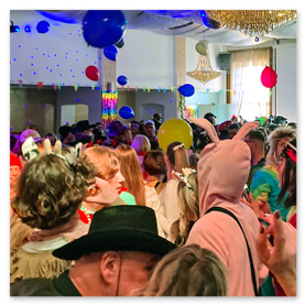 Die Prunksitzung der KG13 findet jährlich 13 Tage vor dem Rosenmontag statt. Immer wieder gelingt es uns, hunderten Besuchern mit einem bunten Programm das berühmte Lächeln ins Gesicht zu zaubern. Anschließend wird weiter gefeiert – nicht selten bis in den frühen Morgen hinein...